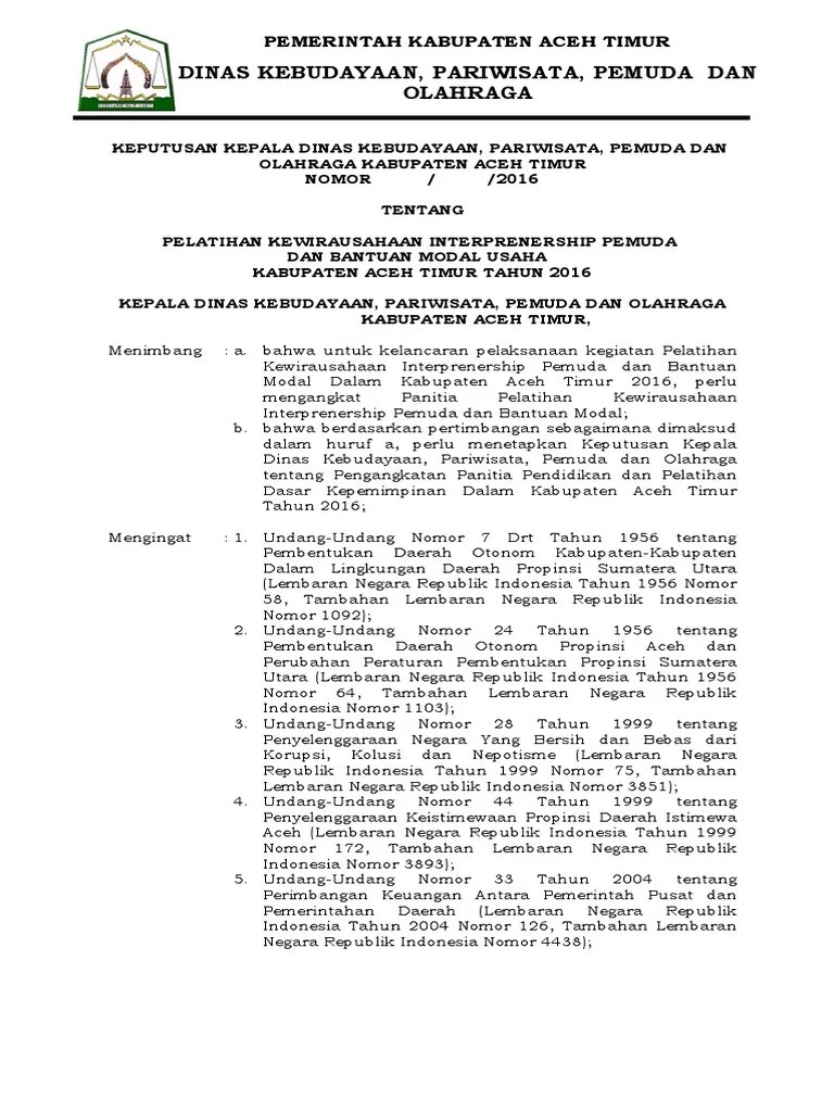Pembentukan panitia pelaksana pelatihan pengelolaan. Contoh surat keputusan sk pembentukan panitia pelaksanaan pekerjaan pembangunan ruang kelas baru kop sekolah . Surat keputusan kepala desa keang. Panitia pelatihan dosen pengajar pendidikan jarak jauh (pjj). Bahwa berdasarkan pertimbangan sebagaimana dimaksud pada huruf a dan b, perlu menetapkan surat keputusan camat pinogu tentang pembentukan panitia pelaksana .